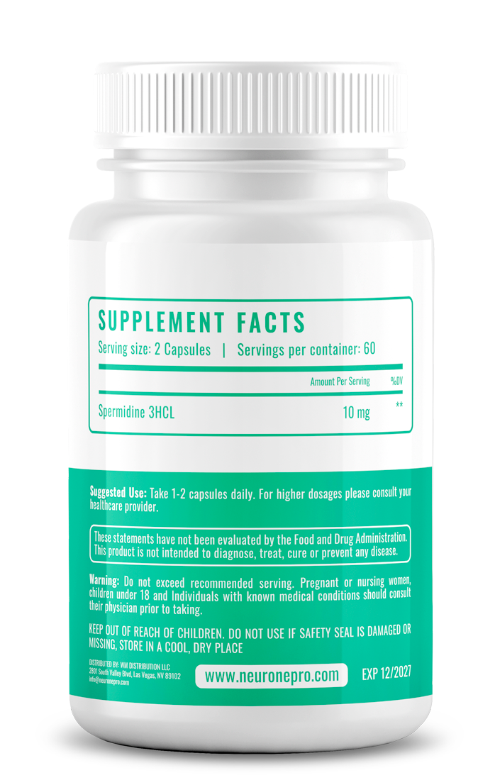 Additionally, Spermidine has been studied for its antioxidant properties, which can help protect cells from oxidative stress and damage caused by free radicals. Supporting efficient cellular function and promoting mitochondrial health, Spermidine is associated with enhanced energy production and overall metabolic efficiency.